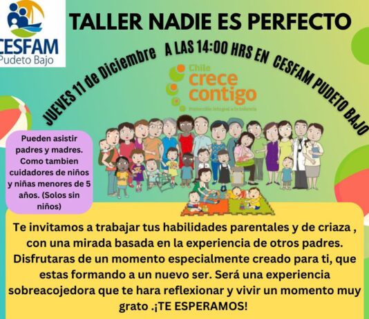 Taller: «Nadie es Perfecto». Jueves 11 de diciembre 14:00 hrs., CESFAM PUDETO BAJO